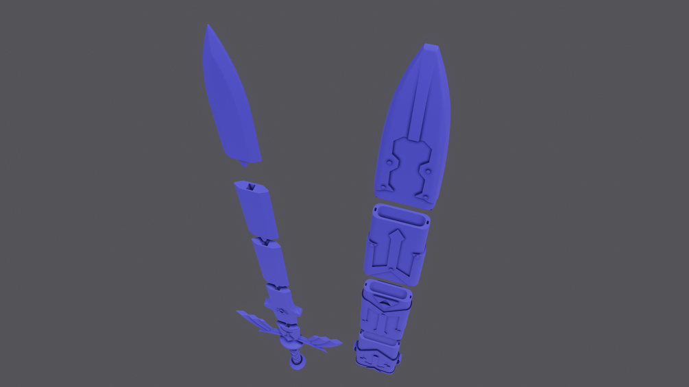 In this file you get all the OBJ and STL files for print out you own Master Sword in sections. Each section is Keys for easier assembly to epoxy it all together. I hope you enjoy you Master Sword and I hope you break many pots with your new legendary weapon.